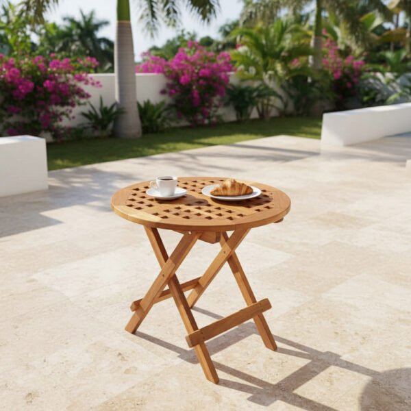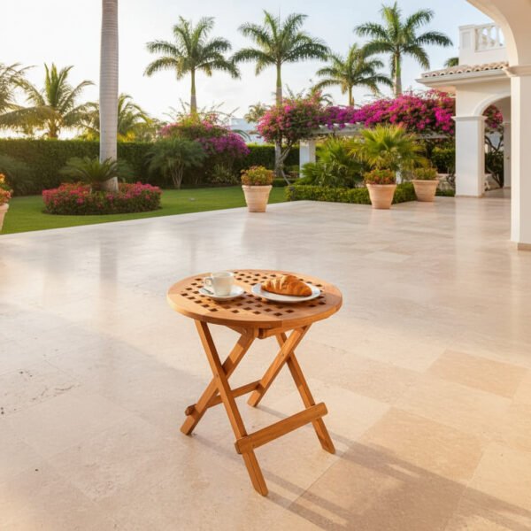 La madera de teca le aporta firmeza, resistencia y un acabado natural que la distingue de otras mesas portátiles. A pesar de ser ligera, esta mesa garantiza estabilidad y durabilidad, incluso en ambientes exteriores exigentes como playa, montaña o jardín.