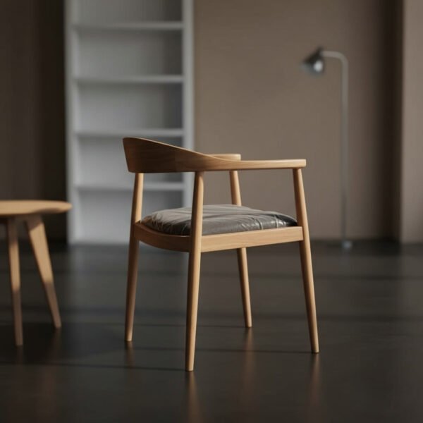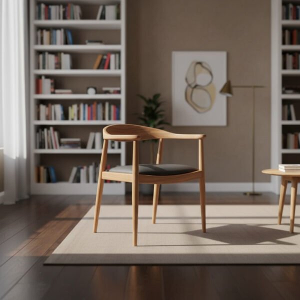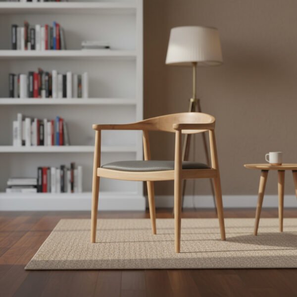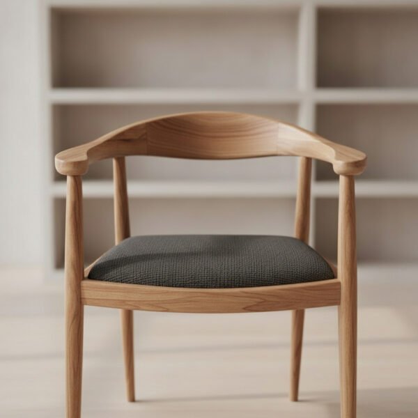 La Silla con Espaldar Curvo y Cojín combina diseño contemporáneo y calidez natural, elaborada en madera maciza de teca para ofrecer durabilidad y estilo atemporal.